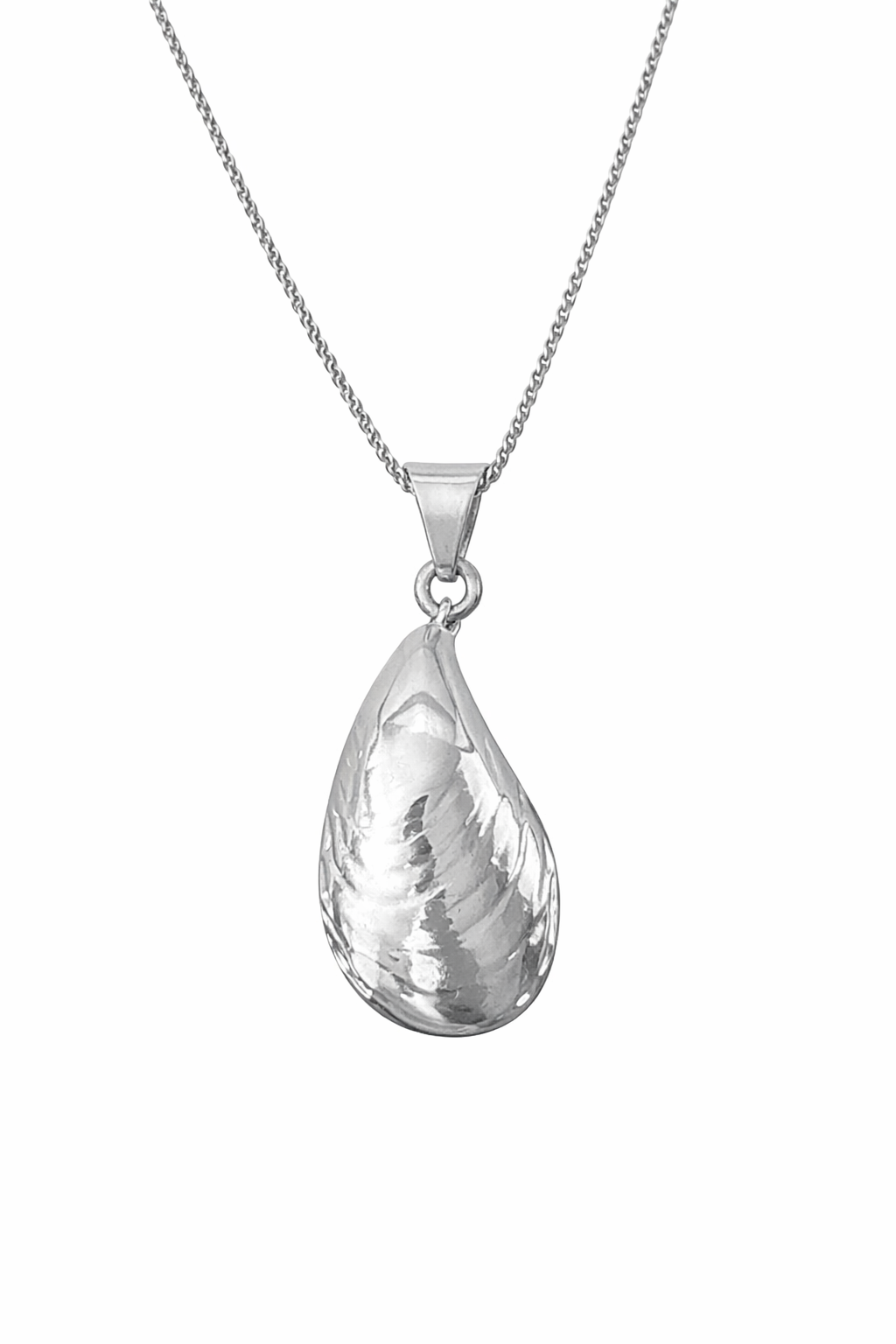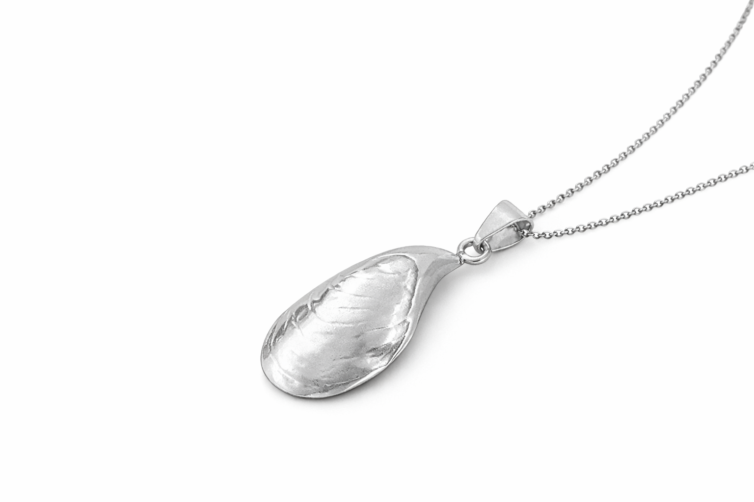 Et vakkert og unikt anheng håndlaget i 925s sterlingsølv, inspirert av naturens fantastiske former. Anhenget er en tro kopi av et blåskjell, med en detaljrik finish som fanger skjøre linjer og former. Dette tidløse smykket ligger flott på brystet og passer perfekt til både hverdagsbruk og mer formelle anledninger.