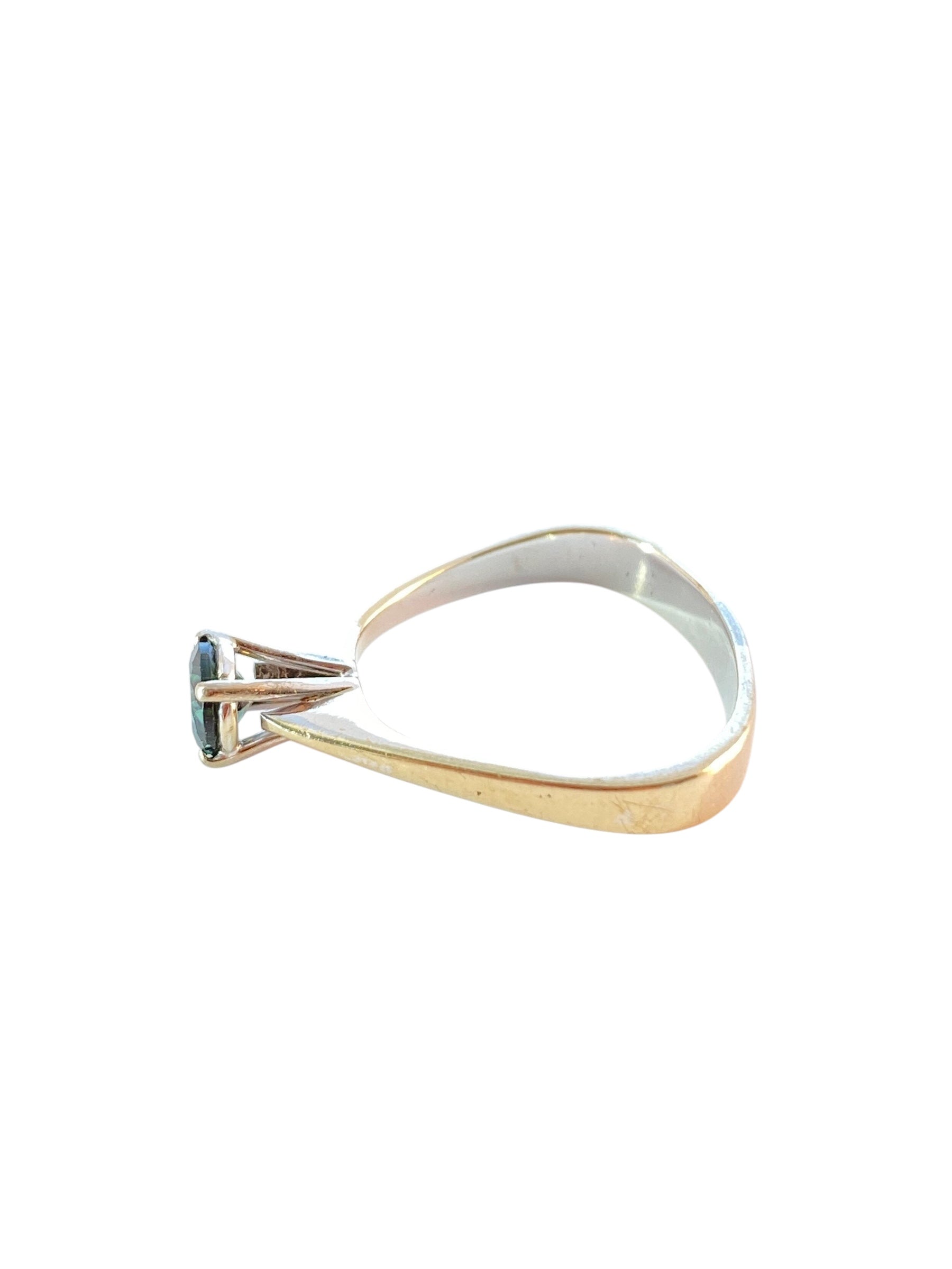 Dette er en bemerkelsesverdig skandinavisk vintage designring som skiller seg ut med sin dype grønnblågrå sten. Den har et spesielt preg og gir umiddelbar oppmerksomhet til sin unike skjønnhet.