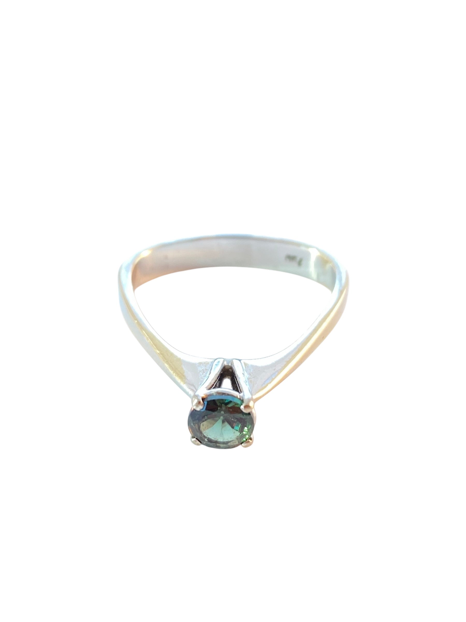 Ringen har en rund Idokras-sten med en carat-vekt på 0,50 ct. Stenen har en vakker gyp grønn farge og er transparent, noe som gir den en sjelden og tiltalende kvalitet.